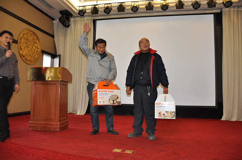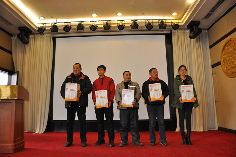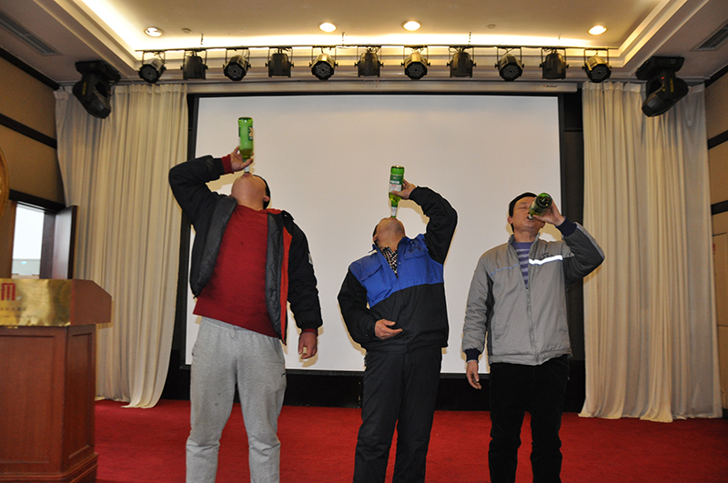 員工全體起立,驚喜的在座位下拿出了工作工作人員提前準(zhǔn)備好的紅包祝福語,在此基礎(chǔ)上,會(huì)議拉開了帷幕。在會(huì)上,劉健董事長(zhǎng)慷慨激昂的闡述了天府未來的憧憬及天府國(guó)外市場(chǎng)的開發(fā),各部門領(lǐng)導(dǎo)也紛紛作了2014年的工作總結(jié),劉復(fù)洪總經(jīng)理作了最后的會(huì)后總結(jié),根據(jù)各部門情況提出了寶貴的意見。會(huì)議期間領(lǐng)導(dǎo)為公司優(yōu)秀班組及優(yōu)秀員工頒發(fā)了榮譽(yù)證書及獎(jiǎng)金。會(huì)議期間精彩不斷,驚喜不斷,禮物不斷,會(huì)餐之余舉行了拼酒大賽,為調(diào)動(dòng)會(huì)場(chǎng)氣氛,相繼抽取了三等獎(jiǎng)(公司特制報(bào)紙),二等獎(jiǎng)(豆?jié){機(jī)),一等獎(jiǎng)(微波爐)及特等獎(jiǎng)(32寸彩電)。會(huì)餐結(jié)束之余,每位員工抽取了彩票,希望將好運(yùn)傳至2015,傳遞給每一個(gè)人。在此,共祝天府重工的明天更加美好。
